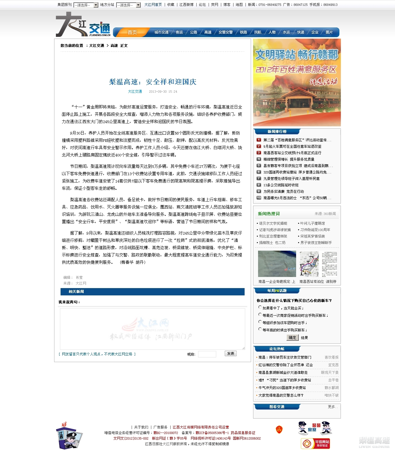 【媒体聚焦】梨温高速:安全祥和迎国庆