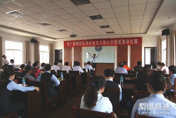 5月8日,梨温高速东乡管理处创新学习形式,以“弘扬社会主义核心价值观”为主题,组织开展一场演讲比赛,加深干部职工对践行社会主义核心价值观的认识。