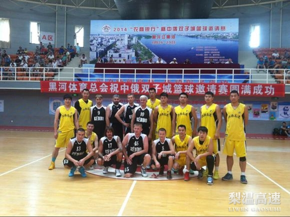 6月26日,2014年“农商银行”杯中俄双子城篮球邀请赛在黑龙江黑河市举行。来自国内黑龙江、吉林、山东、辽宁、河北、江西六省和俄罗斯阿梅基斯、阿州城市服务集团共组建8支队伍参加比赛。比赛采取两组排名赛,复赛则采取交叉淘汰赛。