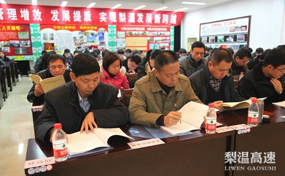 魏和仁在行政报告中回顾2013年工作:在过去的一年,梨温公司在集团和总公司的正确领导下,全体员工脚踏实地、主动作为,各项工作成绩瞩目,圆满完成了年度目标任务。突出抓了五个方面工作:一是收费主业逆势而进,窗口形象明显提升。收费保增势。服务上水平。稽核上台阶。硬件上档次。二是道路养护顺势而为,通行环境显著优化。路容路貌水平得到提高。道路畅通水平得到提高。日常监管水平得到提高。三是综合管理乘势而上,管控水平有效提高。内控管理更加细致。人事机制更加健全。综治安全更加扎实。服务基层更加优质。四是党建工作应势而行,服务能力有力增强。党的群众路线教育实践活动扎实开展。“百千万”教育实践活动扎实推进。廉政建设扎实推进。五是c17官方网站-17(中国) 合势而建,和谐发展稳步推进。文体活动精彩纷呈。思想教育深入人心。创建工作丰富多彩。魏和仁指出,在前段时间的冰雪天气中,公司各级领导身先士卒,靠前指挥,驻守一线,各单位严格按照部署,想方设法维护保畅大局;广大员工任劳任怨、坚守岗位、日夜奋战,高效完成了抗冰保畅任务,这是大家“司荣我荣”境界的充分展现,也是队伍作风优化的有力证明。
