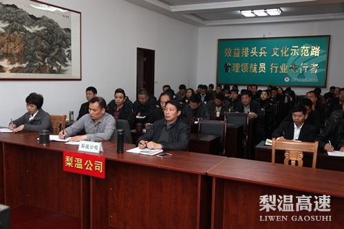 11月26日,省高速集团举办学习贯彻党的十八届四中全会精神专题辅导视频会,梨温公司作为分会场,精心组织相关人员参加学习。公司在家领导党委书记周洪达、总经理潘皓、副总经理余毓玲及公司副科级以上干部参加学习。