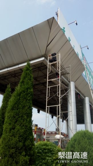 近日,该站收费班组在日常检查中发现,收费岗亭4号出口车道上方的顶棚边角处有一块面板半脱离,如遇大风天气,自重较重的铝塑板面板极易脱落,对下方通行车辆及行人造成安全威胁。安全无小事,隐患不等人。该站及时动作,前往贵溪市租用脚手架,组织人员对该面板进行及时加固处理。由于收费顶棚高度较高,且待加固的面板呈高仰角,不易加固作业,而且为加固作业搭建的4层脚手架易晃动、工作台狭小,只能进行单人作业。该站工作人员克服困难,安全高效地完成了此次作业,保障了收费通行安全环境。(贵溪收费站)