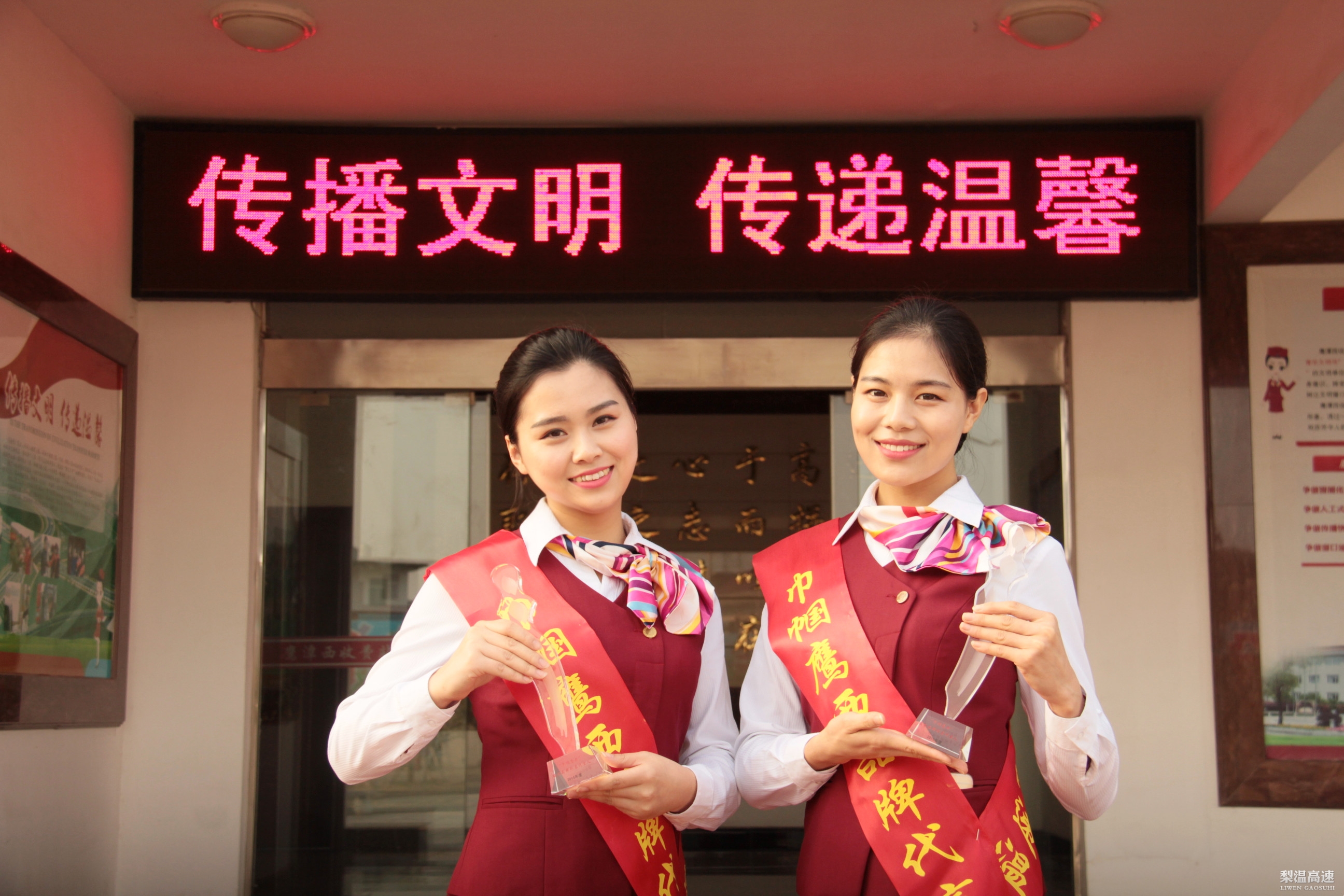 3月19日,梨温高速鹰潭西收费站2015年度品牌形象代言人活动进行表彰,公司党委书记周洪达为活动选拔出来的两名代言人颁发奖杯和授带,并代表党委对鹰潭西收费站作出的贡献表示感谢。纪委副书记梅水平、党委办公室主任梅春华,鹰潭管理处党政负责人参加表彰活动。