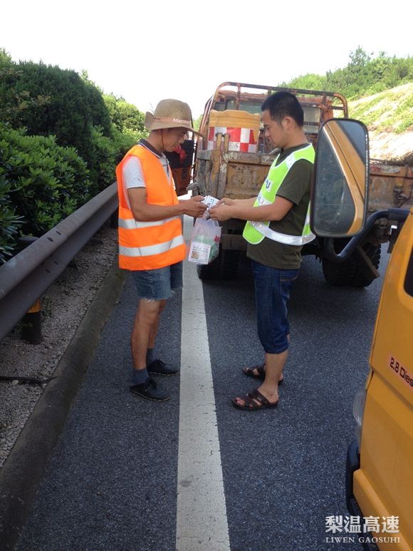 近期,针对连日来高温酷暑天气。玉山养护管理所采购一批藿香正气水、风油精、绿茶以及蜂蜜等防暑降温物品,并送到工地现场慰问施工人员。(田力)