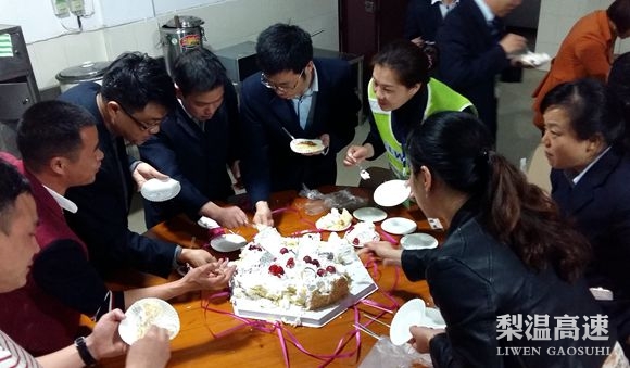 “祝你生日快乐......”4月7日晚,一支生日祝福歌从梨温高速贵溪收费站员工食堂传出,伴随着欢声笑语传遍站区。这是该站今年首次为站员工集体过生日。