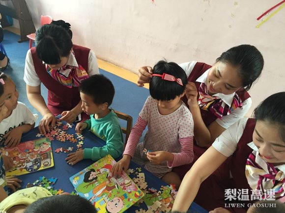 正值六一儿童节前夕,鹰潭西收费站的姑娘们带着精心为孩子亲手制作的精美发箍和发夹、悉心栽培长大的绿色植物以及细心准备的拼图玩具,来到鹰潭市特色需要儿童康复中心,和这群可爱的孩子们共度一个快乐的六一儿童节。