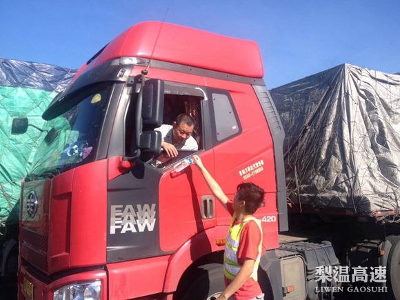 近日,连续的高温天气,导致司机朋友们开车容易疲劳,为了防止因疲劳驾驶发生事故,为过往司乘人员提供细心服务。梨温高速玉山养护管理所开展盛夏送清凉活动。