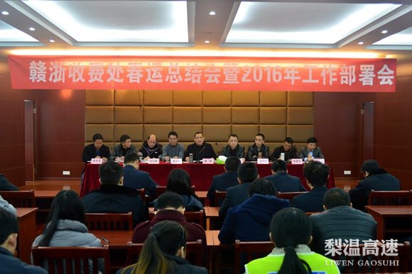 3月17日,赣浙收费处召开春运总结会暨2016年工作部署会,总经理潘皓,党委副书记、纪委书记雷霆、纪委副书记梅水平等到会,该处干部职工40余人参加会议。