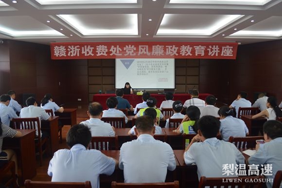 为进一步丰富“两学一做”学习教育内容,提升全体干部职工廉洁自律意识,7月7日下午,梨温高速赣浙收费处邀请专家老师进行党风廉政教育讲座。