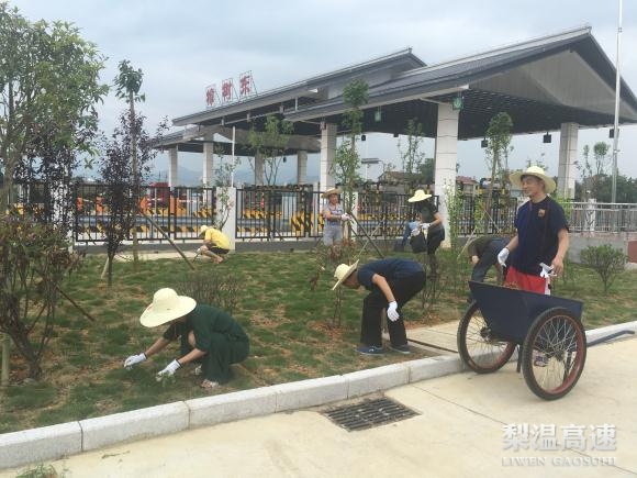 近日,东昌高速樟树东收费所组织全体员工对院区进行集体清扫,引导人人争做护绿使者。