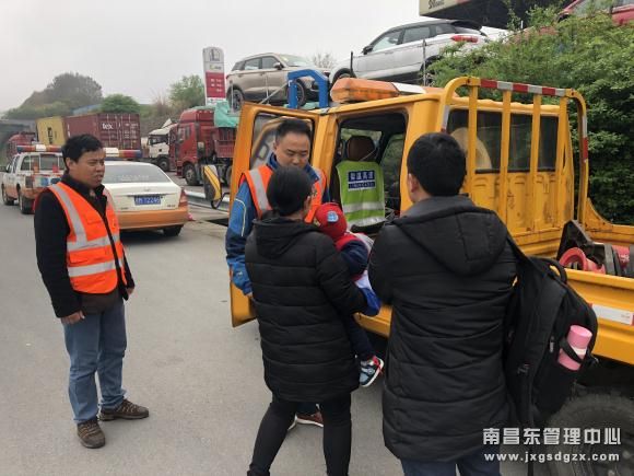 3月27日上午8时许,南昌南管理中心杨梅岭养护站工作人员巡查至上饶服务区南区附近时,发现一对年轻夫妇抱着一个孩子站在高速公路主线应急车道上张望,神情十分焦虑。