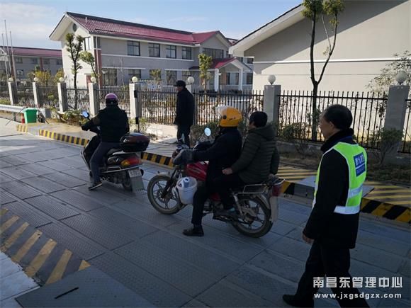 2月28日上午,都昌东收费站当班人员发现一行人骑摩托车在站出口105车道内欲骑车上高速,在发现此情形后,立即阻止他们骑车上高速,并带至收费岗亭安全岛。经了解,他们是附近村庄的村民,想沿着高速公路寻找捷径去田地里干农活,该站人员当即对他们进行了交通安全教育,讲解行人上高速的危害性。