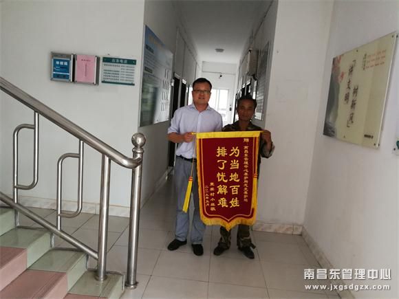 5月27日10时许,里奖村干部代表全村老百姓来到志光站办公地点,赠送锦旗表示感谢。( 程锐)