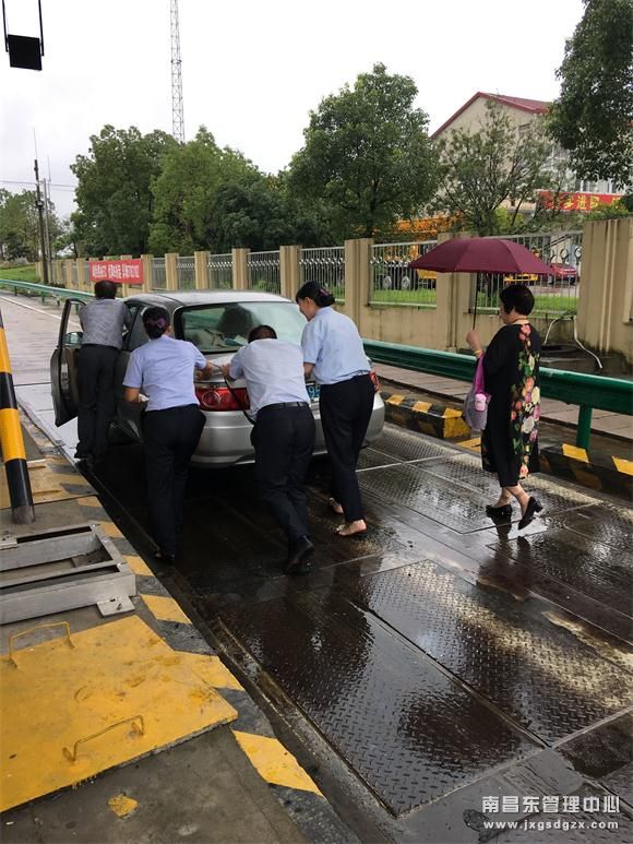 当班班长发现这一情况后立即上前查看,向司机询问后了解到该车因发动机故障导致车辆无法启动。为了保障道口通畅,在正常收取通行费后,班长立即组织员工冒着大雨奋力将车辆推到出口广场的安全地带,随后又帮助司机联系附近汽修厂。该站的热心举动让司机夫妻俩感动不已,看着被雨水淋湿的收费站员工,司机连声说:“不好意思,给你们添麻烦了,让你们冒着这么大的雨帮我推车,真是太谢谢你们了!”