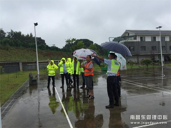 连日暴雨,南昌南管理中心副总经理邓琼华深入东昌高速查看汛情,现场指挥安全隐患排除工作。中心工程养护处负责同志随同。