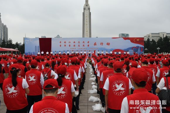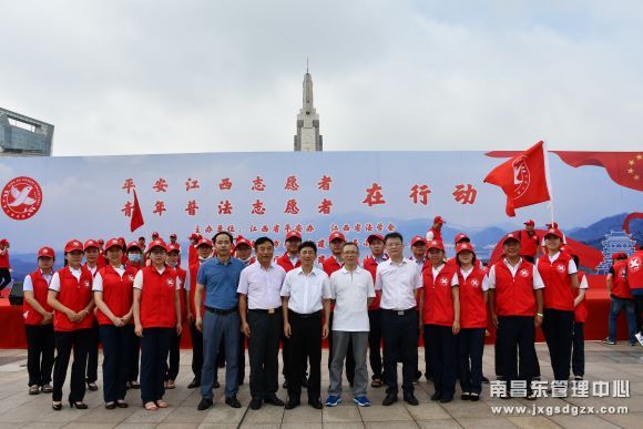 上午10点,“平安江西志愿者在行动”主题宣传活动暨“青年普法志愿者在行动”启动仪式在南昌八一广场举行。来自省直、市直等单位近千名青年志愿者衣着红马甲,整齐列队,为“平安江西志愿者服务标识”揭幕,参与平安江西志愿者队伍和青年普法志愿者队伍授旗仪式。