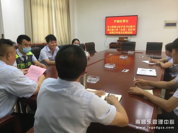 近日,为庆祝中国共产党建党99周年,南昌南管理中心罗湖收费站组织全体员工召开座谈会,学习习近平总书记对中国石油大学克拉玛依校区毕业生回信的精神,并畅谈自身的体会和感悟。
