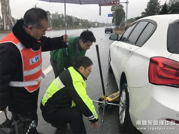 1月16日中午,正值春运高峰时期,南昌南管理中心贵溪收费站车流不断。此时,一辆白色小车缓缓驶入车道,并焦急询问当班收费人员,“你好,请问附近有补轮胎的地方吗?”