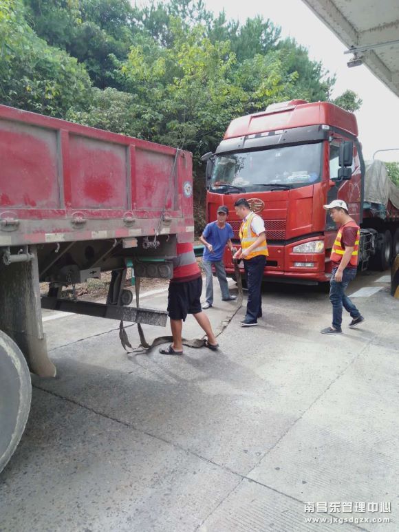 9月6日,一辆六轴型大货车在沪昆高速余江收费站因故障抛锚,该站工作人员齐上阵,热心救助该辆抛锚货车。
