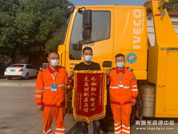 10月29日,安徽蚌埠的马师傅从河南运货再次途径江西时,专程赶到江西省高速集团南昌南管理中心清障救援队,将一面锦旗送到了该队杨梅岭中队负责人的手中,并激动地说道:“上回的事,真是太感谢你们了,这不,我来给你们送锦旗啦!”