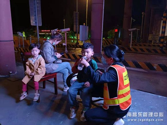 5月28日凌晨1点多,南昌南管理中心弋阳收费站收费班长夏群燕像往常一样在安全巡查时,突然看到出口闸道处有几个人影,此时天色已晚,附近又没有其他车辆,这一现象立即引起她的注意,夏群燕立即上前查看,原来是一位女士牵着两个小孩,并热心帮助她们。