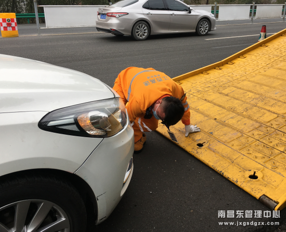 从收费站出口不时传来一阵警笛声,闻声而望,一个身着黄色工作服的男子正驾驶着一辆黄色的清障车迎面驶来。他叫徐云峰,是鹰潭中队的一名驾操手。