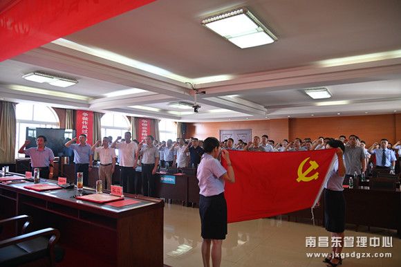 伴随着雄壮的国歌声为此次大会拉开帷幕。面对鲜红的党旗,在陈本华同志的领誓下,全体党员举起右拳,饱含深情的说道:“我志愿加入中国共产党,拥护党的纲领,遵守党的章程,履行党员义务……一声声一句句铿锵有力的誓言,表达了全体党员不忘初心、牢记使命的坚定信念和责任担当。