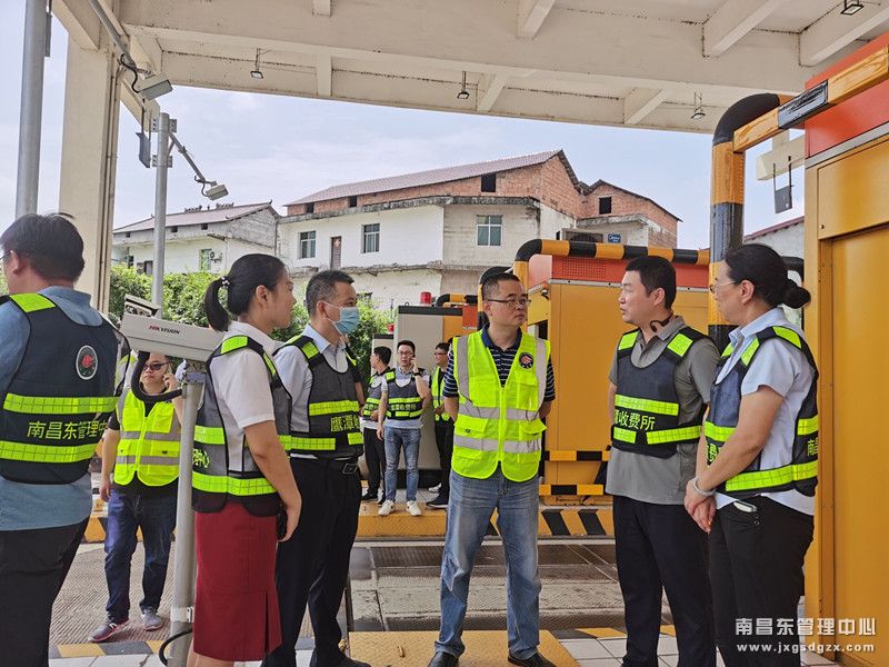 8月18日,路网运营公司党委委员、副总经理王勇到南昌南管理中心鹰潭西收费站检查指导智能收费试点站工作。南昌南管理中心副总经理阮琦等陪同。
