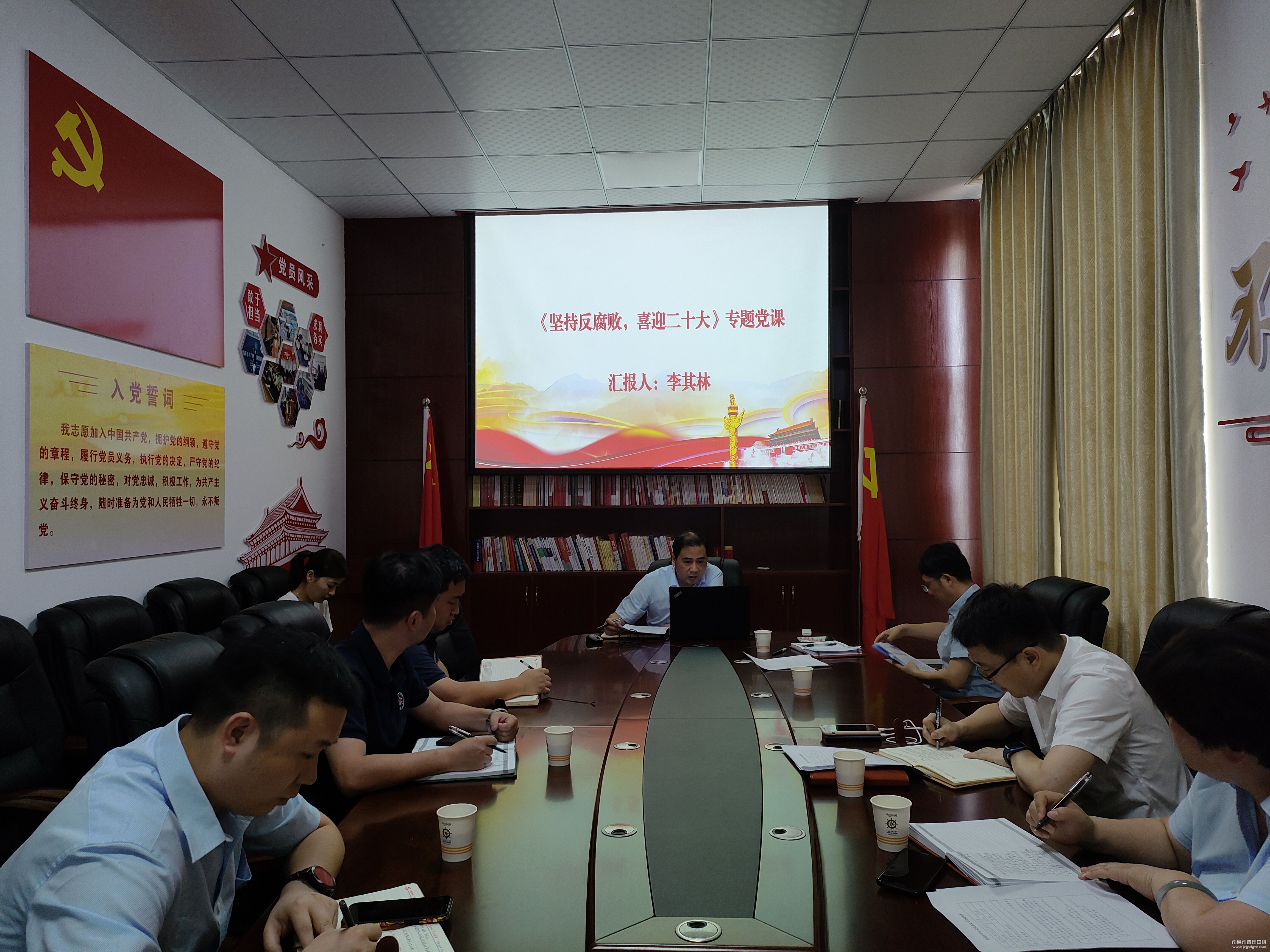 为进一步加强党风廉政建设,提高党员干部反腐倡廉意识。近日,信息分中心党支部书记负责人为该支部党员干部上了一堂“坚持反腐败,喜迎二十大”主题教育党课。