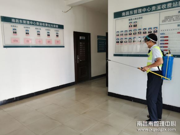 “要与新冠病毒斗争到底!”收费班长杨火金,作为家里顶梁柱的他,家里上有身体欠佳的父母,下有小孩,自己又是“三高”人士。自贵溪疫情发生以来,一直坚守岗位,将家中老小交由妻子照顾,已有61个日日夜夜没有回过家。他每天都会早早起床,背上装满稀释后的84消毒液喷壶对办公楼、宿舍楼、食堂等人员相对集中的场所进行消毒。