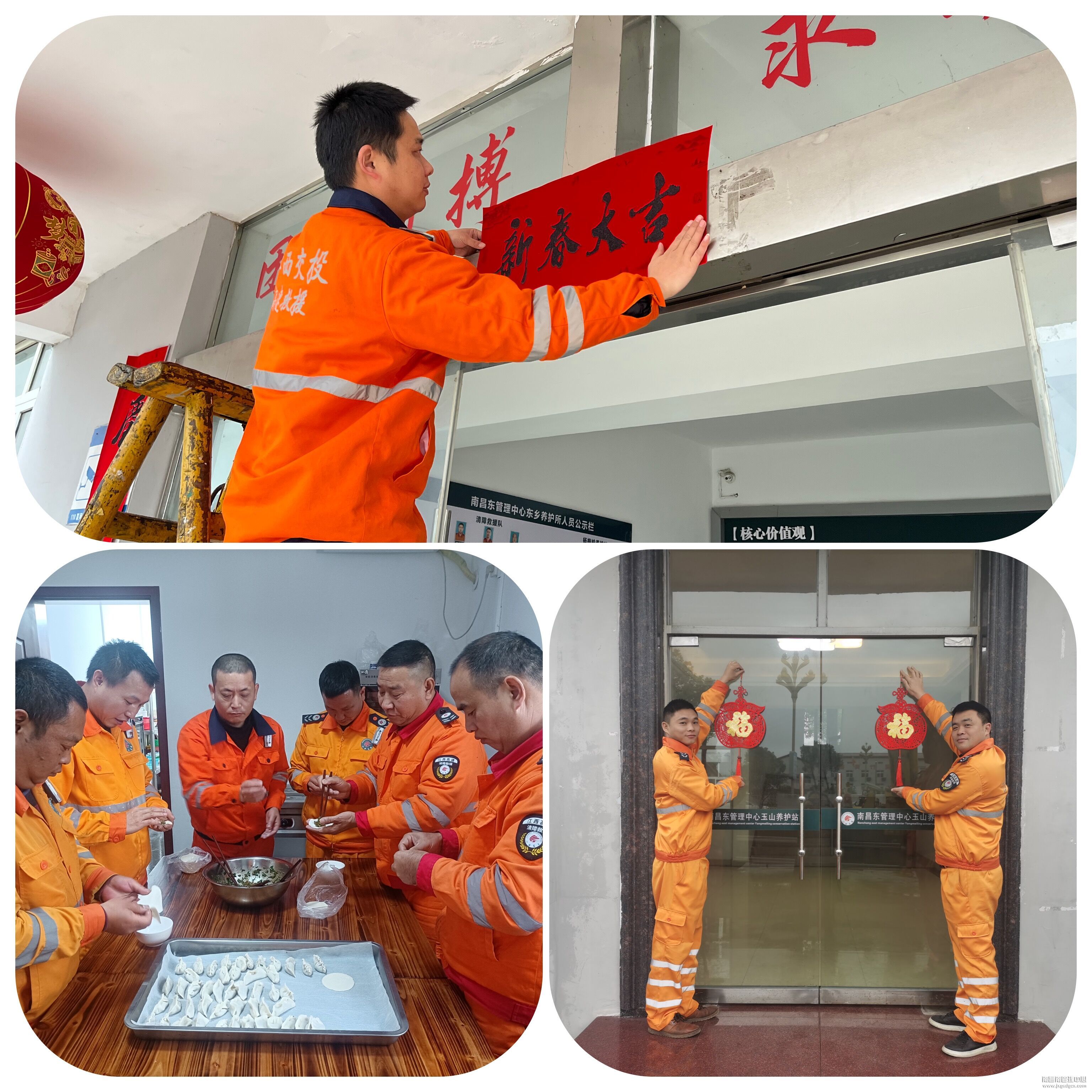 为了广大司乘的安全出行,平安过年,车辆救援大队全体员工坚守岗位。俗语道:贴上春联,挂上灯笼,才更有年味,大家利用闲暇时间,就一起把春联、窗花贴好,挂上红灯笼。喜庆的大红灯笼高高挂起,一幅幅寓意美满的吉祥对联,营造了浓厚的节日氛围。他们用勤劳的双手敲响新年的钟声,托起新一轮的期待和向往。