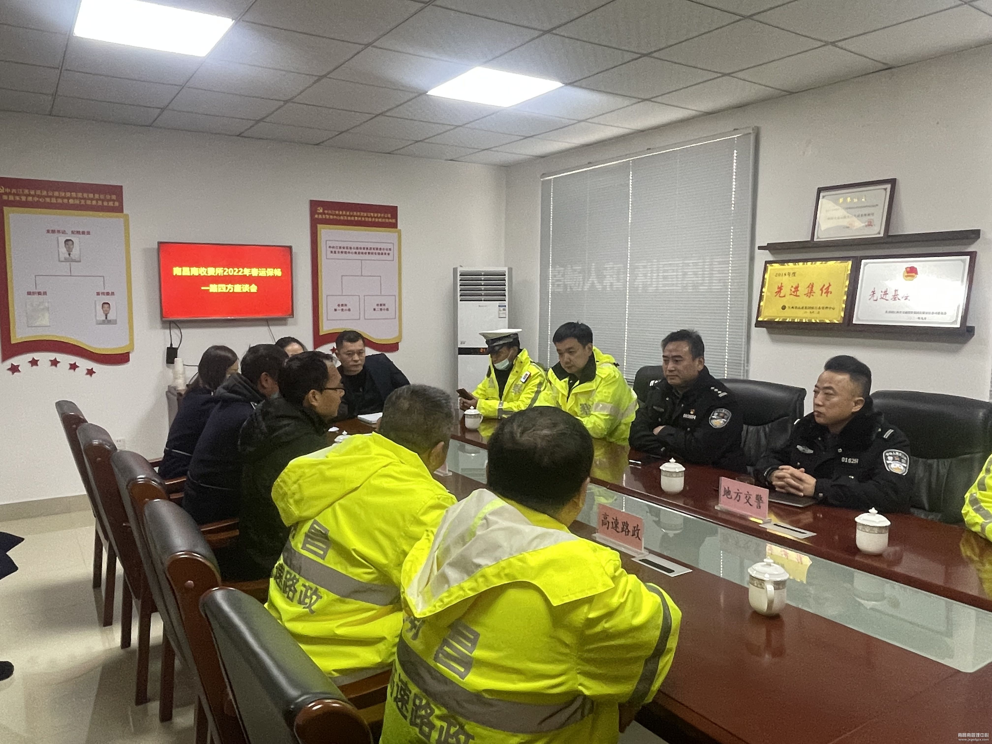 1月17日上午,春运正式启动,为切实做好昌宁连接线南昌南收费所春运期间安全保畅管理工作,确保辖区道路安全畅通。南昌南管理中心南昌南收费所牵头组织召开2022年春运保畅“一路四方”联勤联动工作会议及春运启动仪式,高速交警一支队七大队、高速路政南昌支队七大队和地方交警共同参加此次会议。