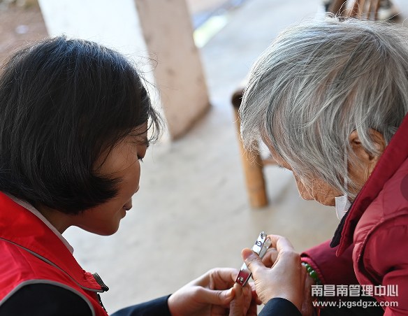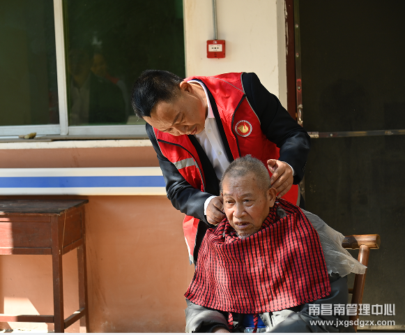 志愿者们为79岁的张大爷理发,娴熟的手艺一下子让老人家面貌一新,笑的合不拢嘴,83岁的何大爷见状跟在后面排队等候。一旁几个女同志,还拉起两个老奶奶的手,细心的为她剪指甲、梳头发……
