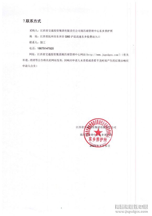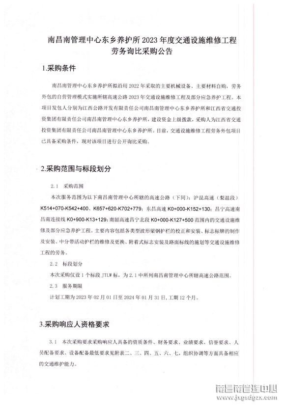 南昌南管理中心东乡养护所2023年度交通设施维修工程劳务询比采购公告