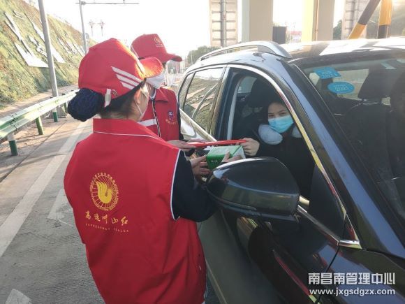 春运期间,南昌南管理中心鹰潭东收费站开展“助力春运志愿服务暖人心”活动,发放556份精美小礼品及556份安全宣传手册。