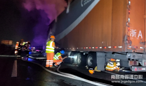 余江中队:深夜大货车自燃,车辆救援伸援手