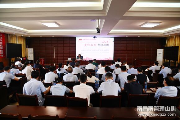 5月26日,南昌南管理中心党委书记陈苏华以“锤炼忠诚干净担当的政治品格 争做新时代合格党员”为主题,采取视频会议形式为中心全体党员讲授主题教育专题党课。