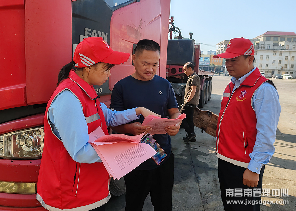 为提高广大司乘人员超限超载安全意识,宣传超限超载车辆禁止上路,营造安全畅通的行车环境,近日,南昌南管理中心东乡西收费站组织志愿者走访物流企业开展治超宣传活动。