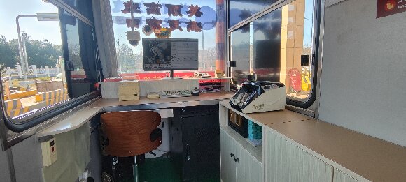 为改善收费岗亭内部环境,营造舒适整洁的工作环境,该站对岗亭内部进行了改造升级,工作人员从细处着眼、从小事着手、从实处着力,在岗亭右边做了一排储物柜,可以将相关文件、学习资料、掌上绿通等物品放置在柜子中,确保了桌面的干净、整洁。将以往笨重的保险柜更换为隐藏式小型保险柜,放置在储物柜中以节省空间。同时为桌面铺设保温垫,更换大屏幕显示器、更换异响坐椅等等。