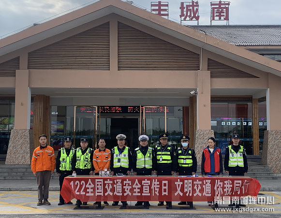 全国“122”交通安全宣传日来临, 12月1日,南昌南管理中心东乡养护所新干养护站联合高速交警及高速行政执法部门,在东昌高速丰城南服务区举办一场交通安全知识线上线下答题抽奖活动。