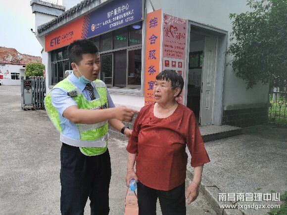 5月19日,在南昌南管理中心上饶东收费站入口,工作人员值勤时发现一名老人闯进收费站入口,立即上前劝阻,并妥善安置助其顺利回家。