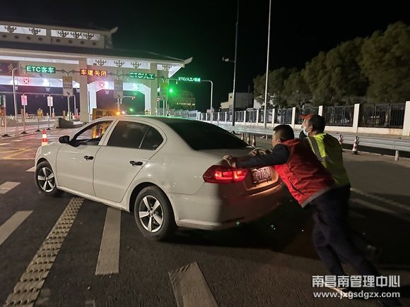 11月26日,一辆白色小车因燃油耗尽抛锚在南昌南管理中心东乡收费站入口,收费工作人员发现后及时伸出援手,暖心解困。