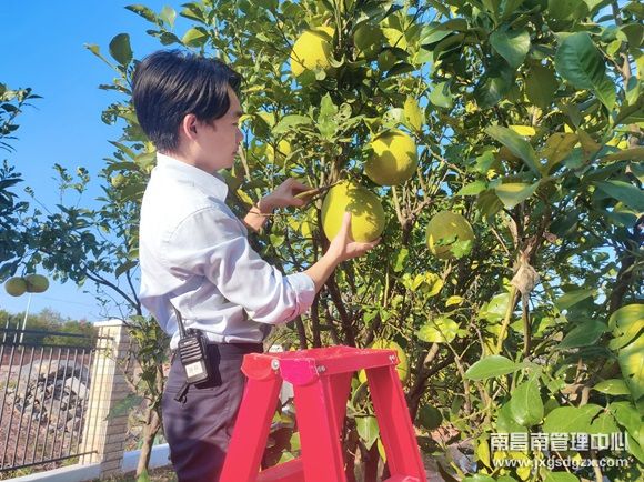 11月25日,走进南昌南管理中心广丰收费站院区,浓郁的柚香扑鼻而来,这里正在如火如荼进行着一场热闹非凡的采摘“盛会”。