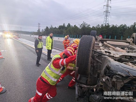鹰潭中队:小车侧翻 快速救援