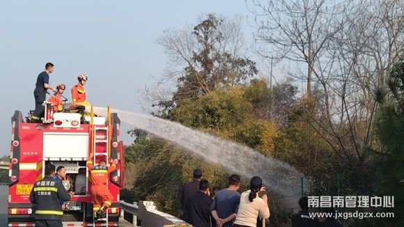 “在东昌高速公路太阳枢纽转东乡方向两、三公里处,边坡着火了,旁边的树木也被引燃,急需救援。”1月23日下午15时06分,南昌南管理中心罗湖养护站值班人员接到过往司乘求助电话。